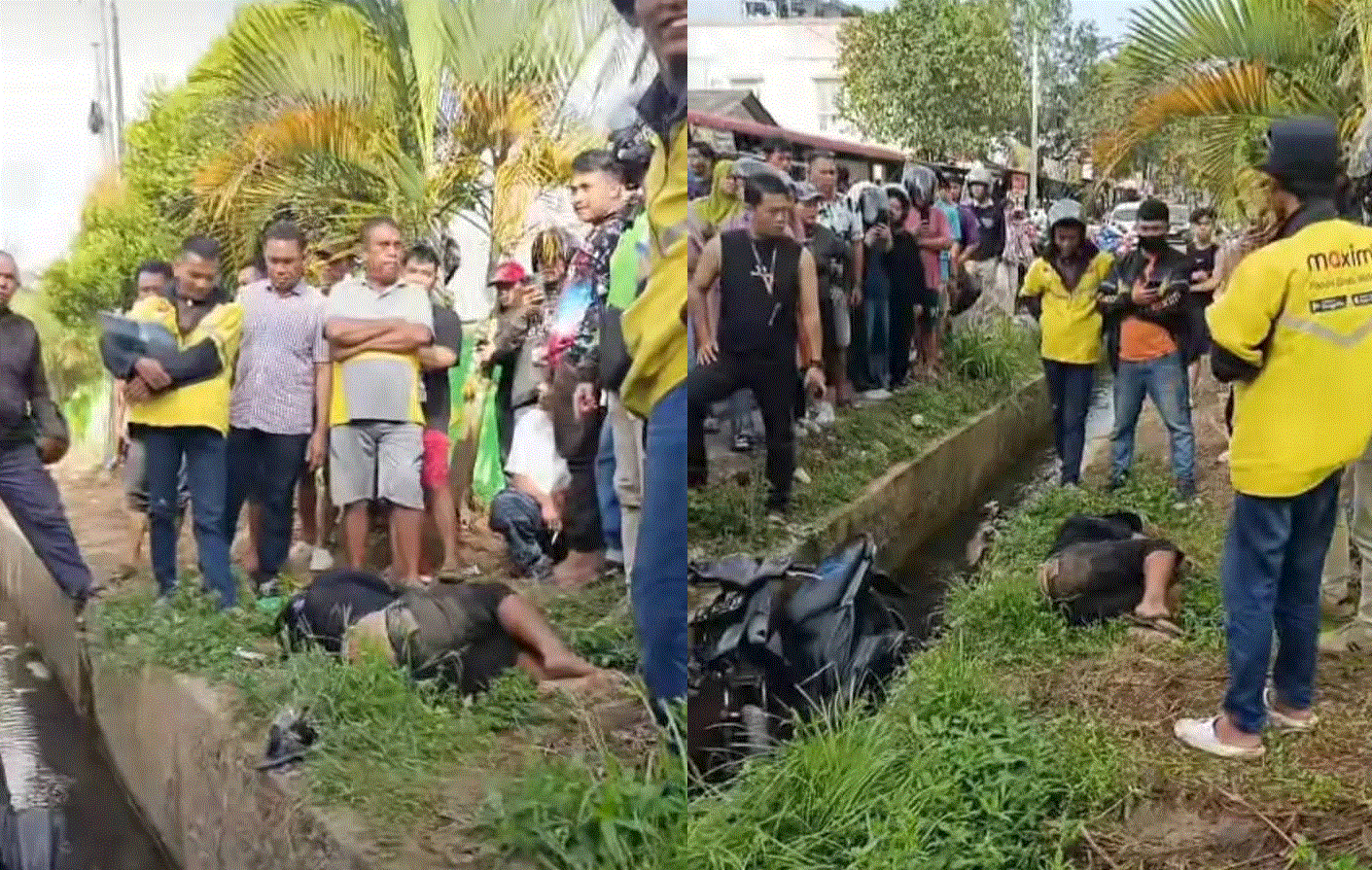Pelaku yang terjatuh ke parit saat mencoba kabur, nekat melakukan aksi pura-pura pingsan demi menghindari amuk massa dan evakuasi polisi.