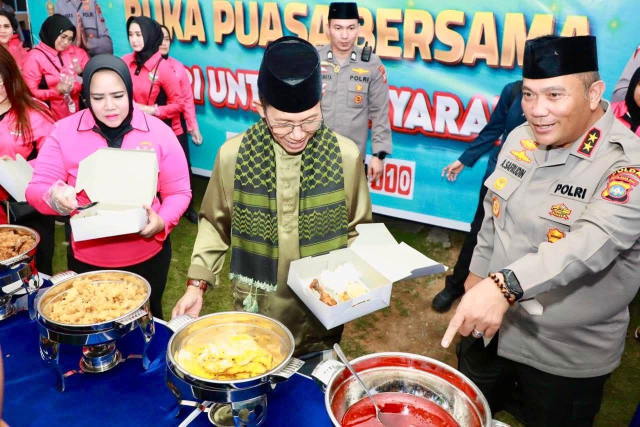 Wali Kota Batam, Amsakar Achmad, bersama Kapolda Kepulauan Riau (Kepri), Irjen Pol Asep Safrudin, ikut turun langsung menyajikan santapan berbuka puasa bagi warga di Masjid Al-Fajri, Sembulang, Kecamatan Galang, Selasa (3/3/2026).