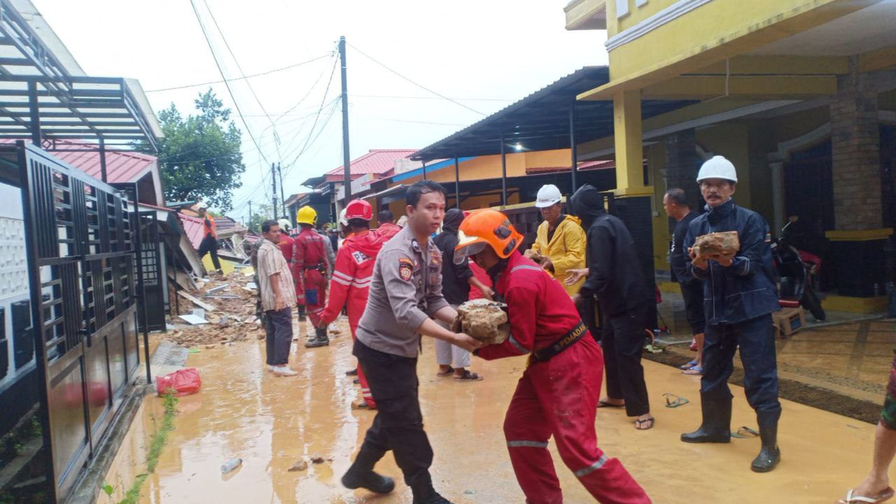 Proses evakuasi musibah longsor di Tiban Baru, Kecamatan Sekupang, Kota Batam. (Foto: Dok. Polsek Sekupang)							    Batam – Peristiwa tanah longsor melanda kawasan Tiban Koperasi, Kelurahan Tiban Baru, Kecamatan Sekupang, Kota Batam, pada Senin dini hari (13/01). Musibah ini mengakibatkan lima rumah roboh, dua warga meninggal dunia, dan beberapa lainnya mengalami luka-luka.