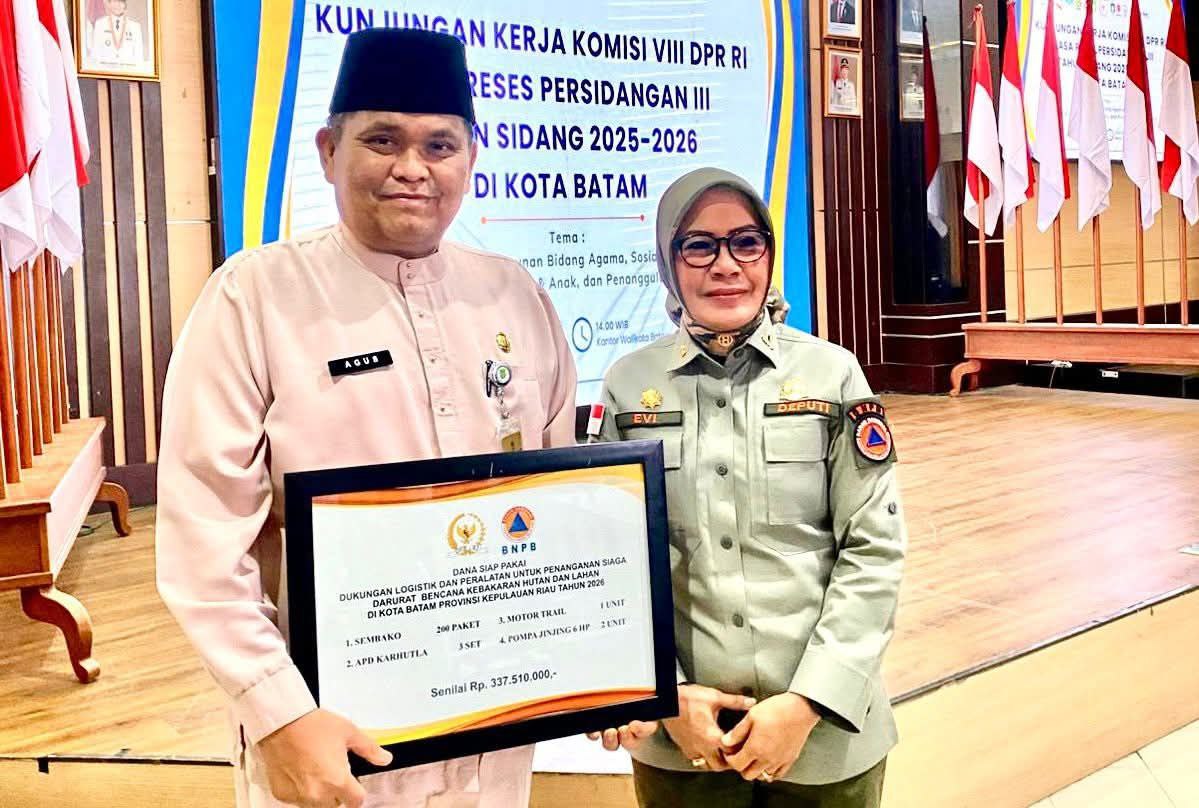 Bantuan tersebut diterima langsung Kepala Badan Penanggulangan Bencana Daerah (BPBD) Kota Batam, Agus Bendri, dan disaksikan langsung Deputi Bidang Logistik dan Peralatan BNPB, Andi Eviana, dalam kunjungan kerja Komisi VIII DPR RI pada masa reses Persidangan III Tahun Sidang 2025–2026.